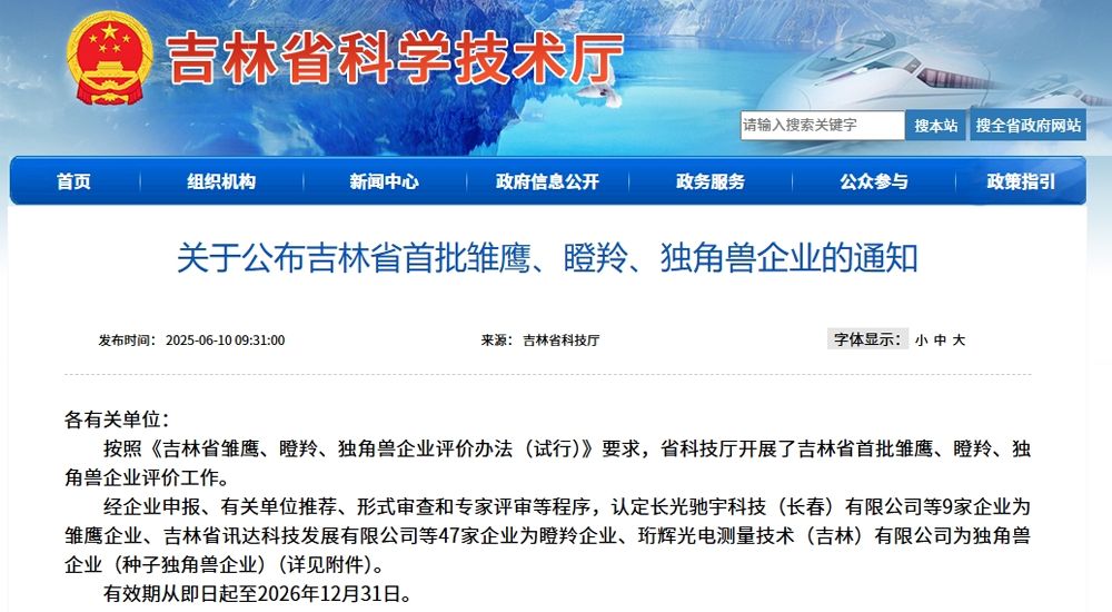 2025q??0日,吉林省科学技术厅公布?jin)吉林省首批雏鹰、瞪、独角兽企业名单。吉林中U研伸科技有限公司凭借卓的创新实力与爆发式的成镉K度Q成功跻w吉林省首批“瞪企业”行列!